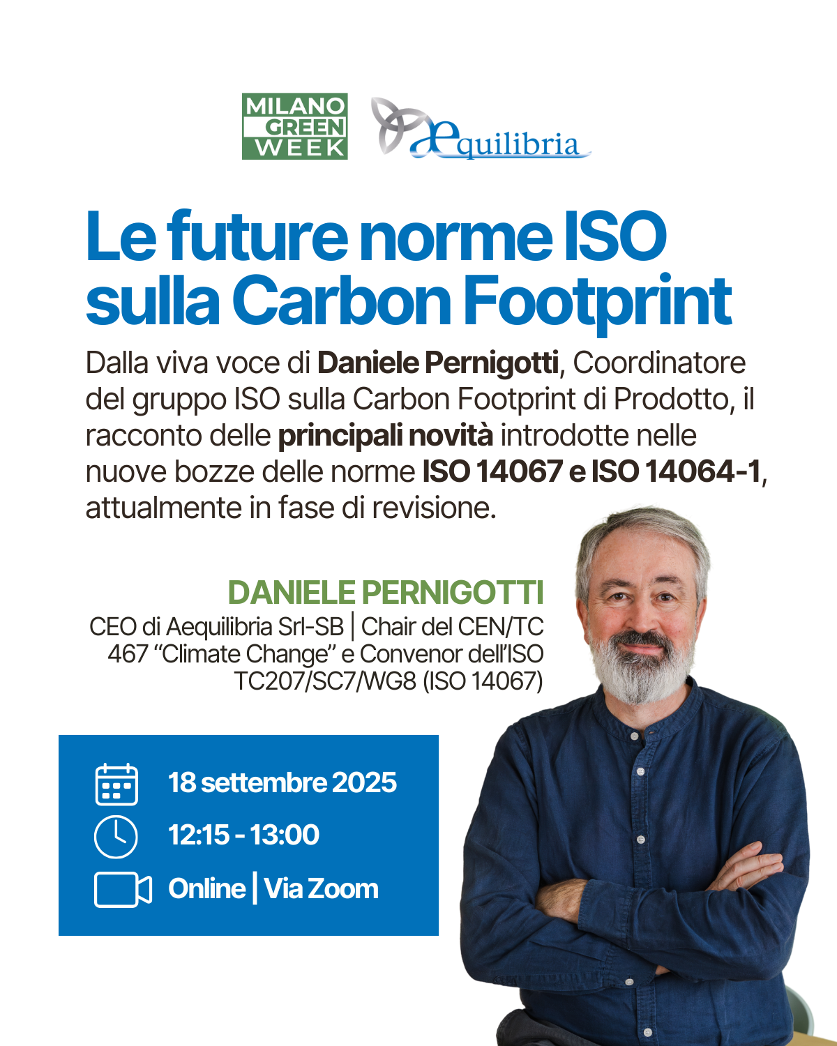 Focus del corso: Milano Green Week - Webinar sulle principali novità introdotte nelle nuove bozze delle norme ISO 14067 e ISO 14064-1, attualmente in fase di revisione.