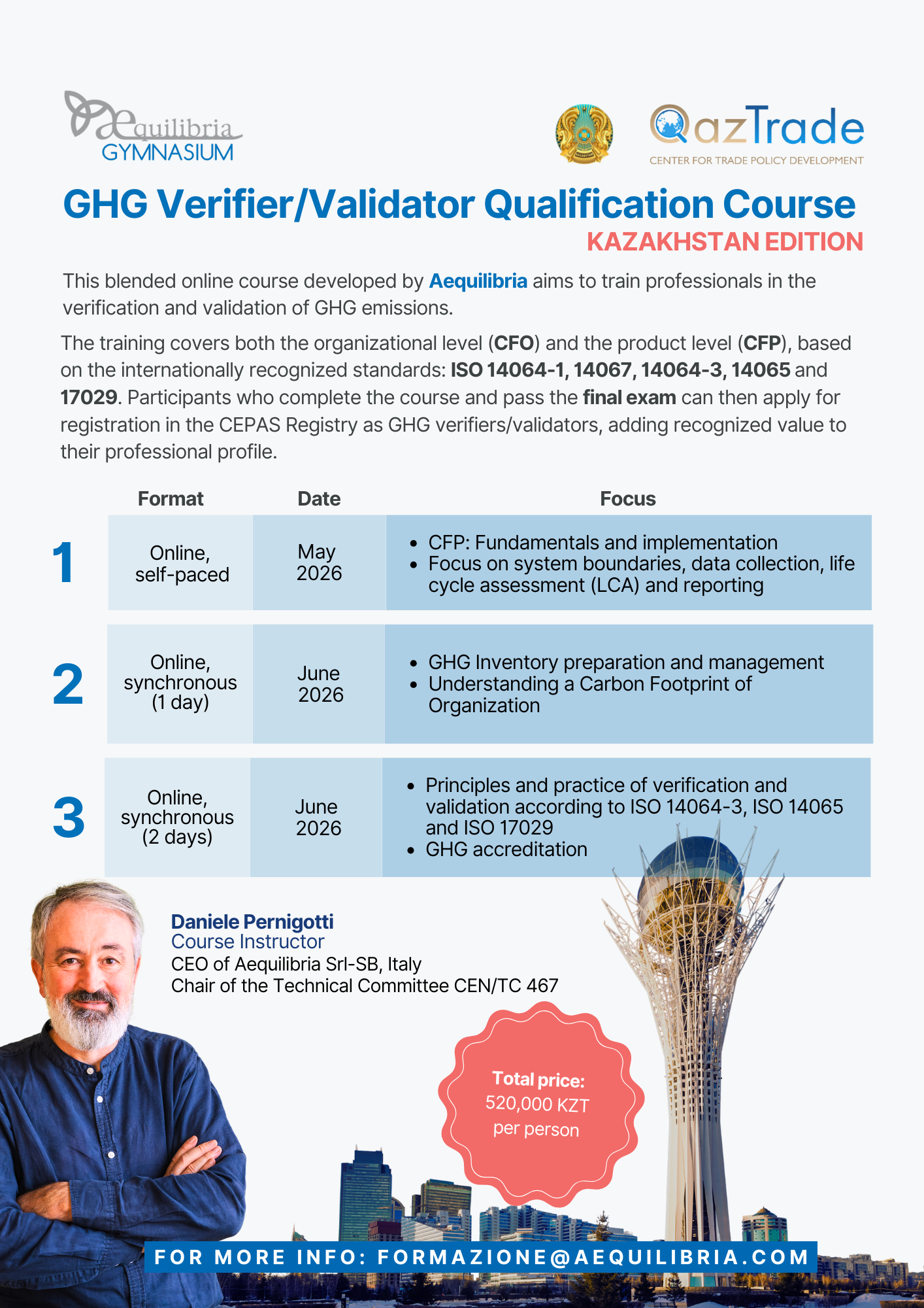 Equip your team in Kazakhstan with a complete, internationally recognized pathway to become GHG verifiers/validators and access new low-carbon business opportunities at home and abroad.
